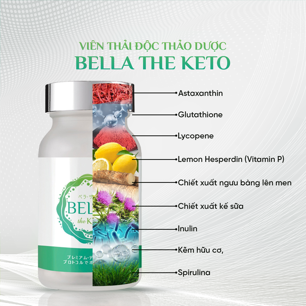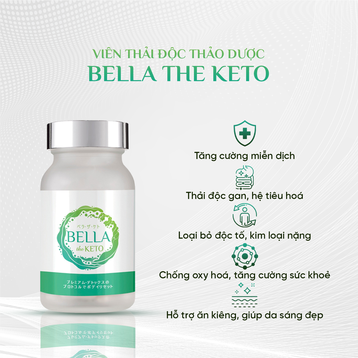 Sự kết hợp tinh hoa giữa Đông y truyền thống Nhật Bản và khoa học dinh dưỡng hiện đại đã tạo nên công thức độc quyền của Bella the Keto – viên uống thải độc toàn diện với 9 chiết xuất thiên nhiên quý giá. Được chứng minh lâm sàng tại Nhật Bản và Việt Nam, sản phẩm không chỉ hỗ trợ thanh lọc cơ thể một cách hiệu quả, an toàn, mà còn nâng cao sức khoẻ và cải thiện sắc vóc & làn da toàn diện. Sử dụng Bella the Keto mỗi ngày giúp cơ thể nhẹ nhàng hơn, làn da tươi sáng hơn, tinh thần sảng khoái hơn và sức khỏe được bảo vệ một cách bền vững.